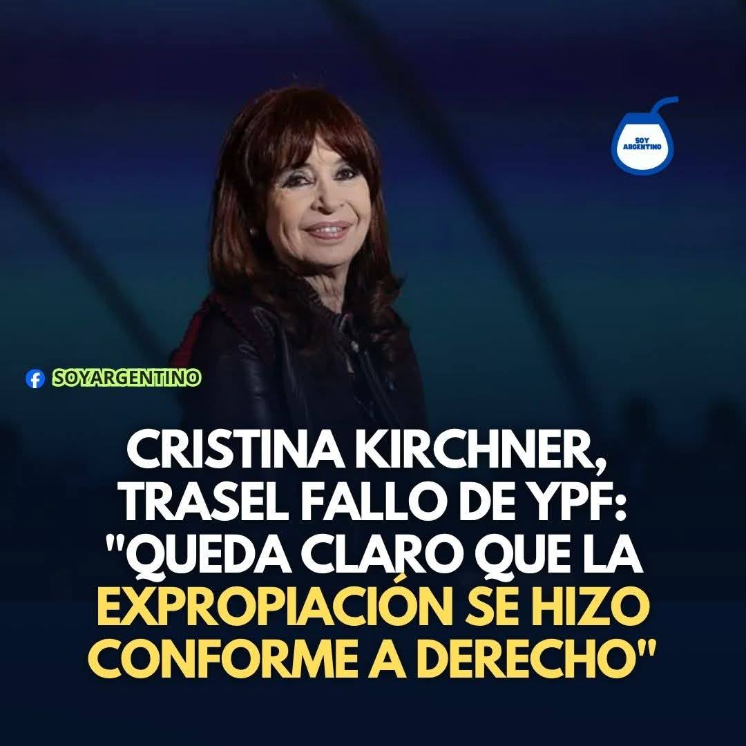 - Cristina tras el fallo favorable “queda claro que YPF se expropió conforme a derecho”