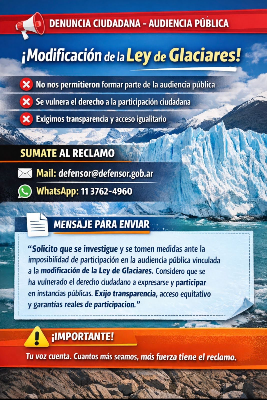 - Ley de Glaciares, exclusión de inscriptos y participación de expositores no registrados