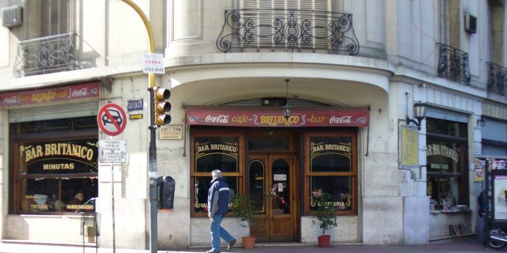 “El Bar Británico es un café Notable de la ciudad de Buenos Aires, ubicado en una esquina típica del barrio de San Telmo, en las calles Brasil y Defensa, frente a la entrada principal del Parque Lezama. Tiene ventanales de tipo “guillotina”.