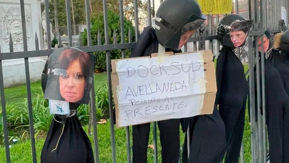 “Con la “opresión impositiva” como consigna en un momento en que no hay suba de retenciones, en Plaza de Mayo se desplegó una protesta que incluyó un “ahorcamiento” en las rejas de la pirámide.
