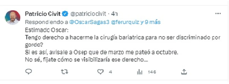 “Otro que también le respondió a Civit fue Oscar Sagás, subsecretario de Salud y excandidato a intendente de Godoy Cruz en la lista de Luis Petri (FCM).