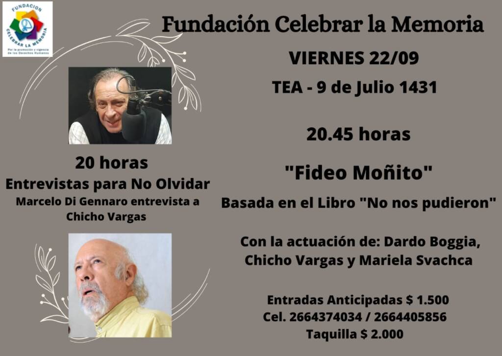 La Fundación Celebrar la Memoria, de San Luis, trabaja fuertemente en lo social desde lo cultural, haciendo un aporte necesarísimo para mantener vivo el pábilo de lo que siempre debemos tener presente. Aquel Nunca Más que sonara fuerte y claro en 1985, no hacía más que seguir sumando jalones a la memoria. Si la nación pudo llegar hasta la instancia del Juicio a las Juntas de Gobierno de la última dictadura, fue por organizaciones como estas, que denunciaron, contuvieron y rememoran.