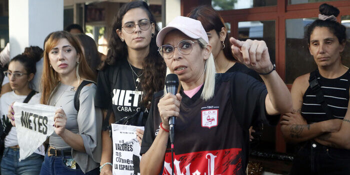 “–Ese momento fue muy difícil y es lo que me tiene todavía muy en shock. El maltrato del secretario de Derechos Humanos, Alberto Baños, fue un maltrato personal, directo. Tuve una conversación telefónica porque no accedió a recibirme y fue con violencia explícita, verbal, en sus modos y en sus formas. No es que me desconocía a mí o lo que estábamos haciendo. Me ha tratado de muy mala manera, se ha acercado él y su personal ( tres custodios y tres agentes de la Policía Federal). Fue un momento muy tenso, se querían llevar a un trabajador para explicarle que tenía que cortar el sonido y todavía no había llegado la notificación oficial. Me decían que iban a reprimir a la gente que estaba afuera esperando. Y una cosa es que te digan que van a reprimir y otra es ver a los camiones hidrantes, la policía, las motos que estaban empezando a subir para amedrentar a los chicos de 15 a 17 años, todos menores. Fue un momento muy violento. De ninguna manera nosotros íbamos a permitir eso porque el costo era que lastimen a los chicos y eso no lo íbamos a permitir nunca. Eso es terrible.