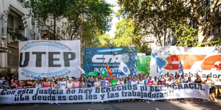 “Por su parte, el Secretario General de la CTA de los Trabajadores, Hugo Yasky, señaló que la marcha “es una reacción a la profundización de la crisis social que están sufriendo los trabajadores en Argentina. Nuestro país que padece una brutal caída en los salarios y que hemos visto acelerarse en los últimos meses, con pérdida del trabajo registrado, caída del ingreso de los trabajadores informales, y la grave situación de la situación de las provincias porque el acuerdo con el FMI impone una restricción del envío de fondos de la coparticipación”.