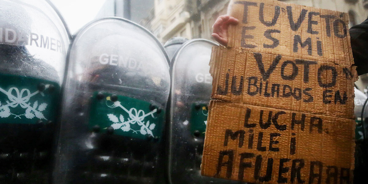 “Desproporcionado operativo represivo frente al Congreso. La protesta de todas las semanas, en la previa del veto presidencial al aumento en los haberes.