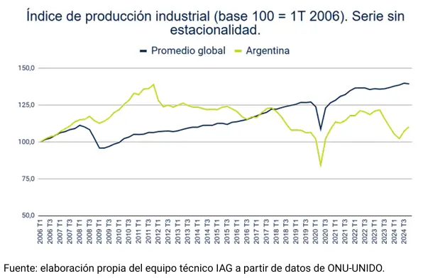 “De esta manera, mientras la industria argentina fue en 2024 la que más cayó en todo el mundo, la ausencia de herramientas que modifiquen la estructura productiva en la actualidad pone en riesgo la supervivencia de actividades clave que enfrentan la desregulación de importaciones, la volatilidad cambiaria y falta de competitividad y la ausencia de políticas sectoriales. Todo esto pone en duda que cualquier intención de sostener un recorrido a la baja de la pobreza sea factible sin condiciones para impulsar la industria que, en estos meses, reportó una caída del 24% en la dotación de personal, esto es el nivel más alto de la serie.
