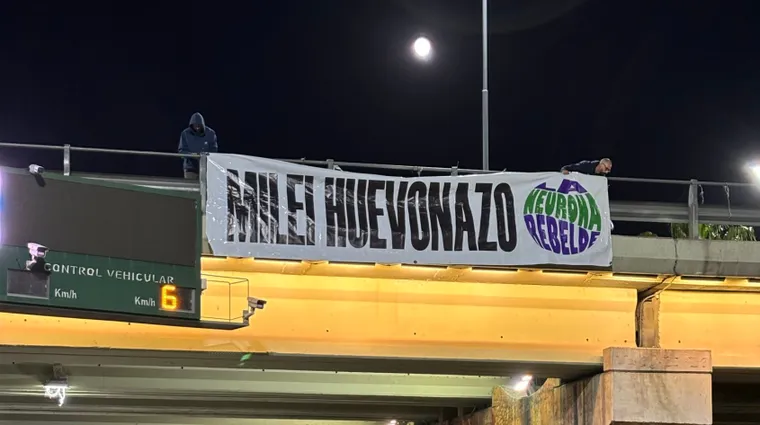 “Cómo fue la detención de los militantes que colgaron el cartel de “Milei huevonazo” en el Nudo Vial