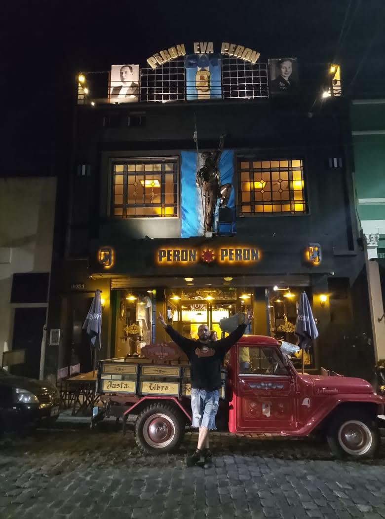 Nené, uno de nuestros amigos y suscriptores, en la puerta de ese templo de la militancia, la gastronomía y la historia
