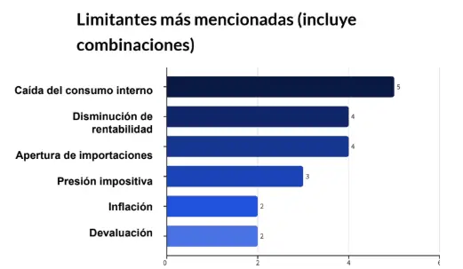 “Lejos de ubicar el problema en los costos laborales, las pequeñas y medianas empresas señalan otros factores como determinantes de la crisis: la caída persistente del consumo interno, la pérdida de rentabilidad y el impacto de la apertura de importaciones: 56,3% de los empresarios considera que la situación económica empeorará y 21,5% directamente no encuentra variables de crecimiento aplicables a su negocio.