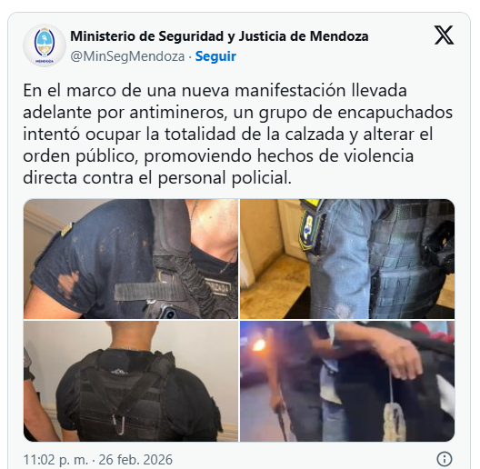 “La contradicción entre la vivencia de los vecinos —que insisten en que fueron gaseados sin provocación— y el reporte oficial de «ataques con inflamables» vuelve a poner bajo la lupa el manejo de la protesta social en la provincia. En Mendoza, el agua sigue siendo el centro del conflicto, tanto en la montaña como en el asfalto.
