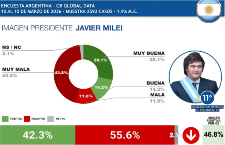 “Cuando el propio ministro Caputo admite que la inflación no mengua, la desocupación pega un salto hacia arriba, el consumo sigue catatónico salvo productos suntuarios dirigidos a una capa delgada de la población, las prometidas inversiones no se manifiestan, excepto en rubros que no generan empleo y la guerra impulsa el precio de los combustibles que encarecen todos los bienes y servicios, estos episodios han deteriorado la opinión social sobre el Presidente, su hermana y el gobierno. El mejor gobernante del planeta tierra cayó al piso 11° entre los Presidentes de la región y su valoración negativa ya se acerca al 60%. Es de desear que la peluca haya atenuado el golpe.