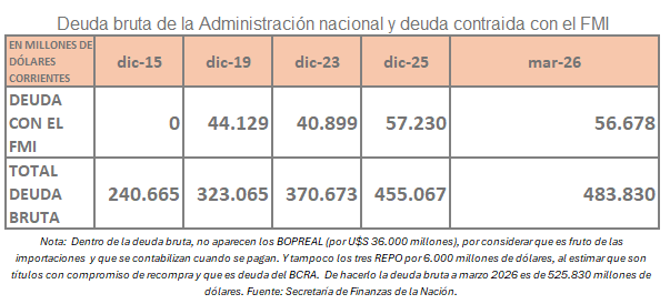 El staff técnico del FMI y el equipo de economía conducido por Luis Caputo alcanzaron, el 15 de abril de 2026, un acuerdo sobre la segunda revisión del programa del Servicio Ampliado del Fondo (SAF) de 48 meses. De ser aprobado por el Directorio de ese organismo, amplía el crédito en 1.000 millones de dólares estadounidenses.