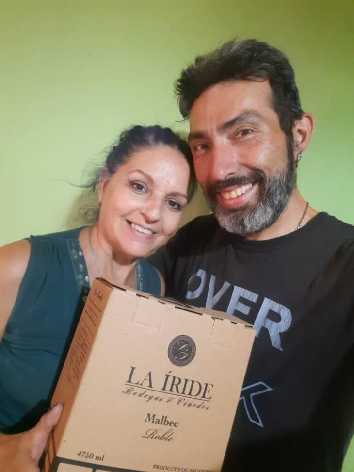 Concurso: Karina Vizcaya salió sorteada el jueves 19 de enero de 2023 y ganó una caja de vino. Aquí con su compañero Fermando Mancuso, ambos con cara de feliz cumpleaños… ¡salud!